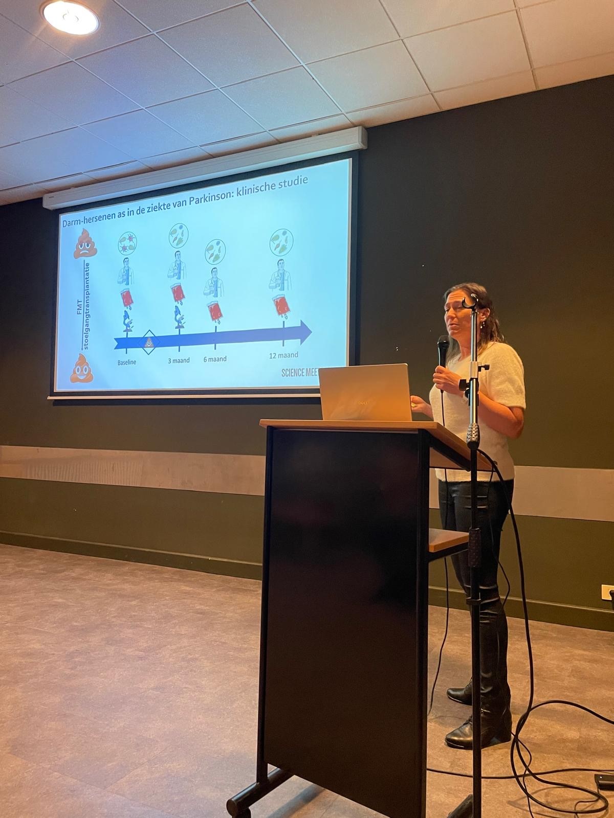 Op 22 oktober mochten we prof. Roos Vandenbroucke van de Universiteit Gent verwelkomen voor een boeiende lezing over de fascinerende link tussen onze darmen en hersenen bij de ziekte van Parkinson. Ze kwam spreken op uitnodiging van onze vereniging Parkinson Pact, nadat wij met veel trots een gift aan haar onderzoek hebben kunnen doen.